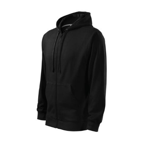 Bluza zapinana na zamek z kapturem i przednią kieszenią przypominająca typ „kangurek“. Kaptur z podszewką i sznurkiem. Kieszenie przeszyte ozdobnymi szwami. Lamówka dolna oraz mankiety rękawów wykonane ze splotu żeberkowego 2x2 z dodatkiem 5 % elastanu.