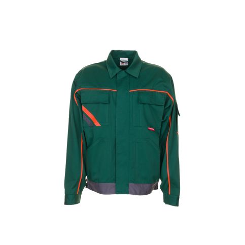 Kurtka wykonana jest z wysokiej jakości materiałów, co zapewnia jej trwałość oraz komfort noszenia. Kolor podstawowy to 65% poliester i 35% bawełna w splocie diagonalnym (ok. 285 g/m²), co sprawia, że materiał jest wytrzymały na uszkodzenia. Dodatkowo, kontrastowy kolor jaskrawego pomarańczu oraz jaskrawego żółtego, który stanowi 85% poliester i 15% bawełna (290 g/m²), przyciąga wzrok, a także zwiększa bezpieczeństwo użytkownika w trudnych warunkach.