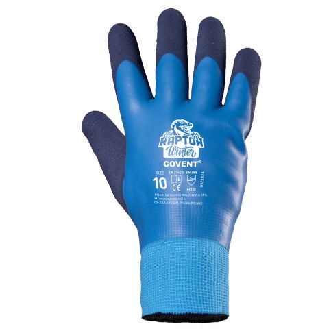 Rękawice COVENT RAPTOR WINTER to doskonały wybór dla osób, które potrzebują niezawodnej ochrony rąk w trudnych warunkach zimowych. Ich charakterystyczny niebieski kolor nie tylko wyróżnia je na tle innych akcesoriów roboczych, ale także wpływa na zwiększenie bezpieczeństwa w miejscach o słabym oświetleniu.