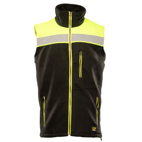 Kamizelka, o kodzie producenta ORKP występuje w eleganckim czarnym kolorze, który doskonale współgra z dynamicznymi dodatkami w intensywnym żółtym odcieniu. Taki kontrast nie tylko przyciąga wzrok, ale również wpływa na poprawę widoczności użytkownika, co ma kluczowe znaczenie w pracy w terenie.