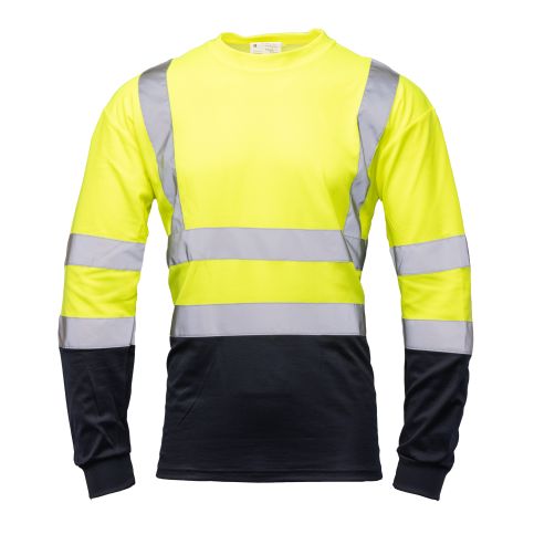 Koszulka wykonana jest z mieszanki 50% poliestru i 50% bawełny, co sprawia, że jest zarówno trwała, jak i przyjemna w dotyku. Elastyczna tkanina o intensywnej widoczności dopasowuje się do sylwetki, zapewniając komfort podczas noszenia przez cały dzień. Długi rękaw oraz mankiety zakończone ściągaczem dodatkowo poprawiają wygodę i fit.