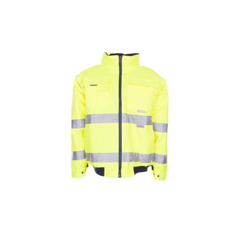 Kurtka pilotka to idealna ochrona podczas deszczu i po zmroku. Dzięki swojej wszechstronności oraz funkcjonalności, skutecznie chroni użytkownika przed niekorzystnymi warunkami atmosferycznymi, nawet w zmiennych temperaturach. Możliwość odpięcia rękawów sprawia, że kurtka w łatwy sposób przekształca się w praktyczną kamizelkę, co czyni ją niezastąpionym elementem odzieży roboczej. Jej jaskrawy żółty kolor zapewnia widoczność na dużej przestrzeni, co zwiększa bezpieczeństwo w trudnych warunkach.