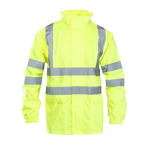 Kurtka dostępna jest w intensywnym żółtym kolorze, który nie tylko przyciąga wzrok, ale również zapewnia wysoki poziom widoczności, co jest szczególnie ważne podczas pobytu na świeżym powietrzu, zwłaszcza w trudnych warunkach atmosferycznych.