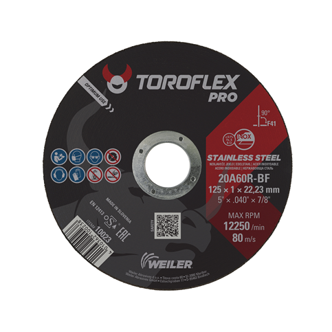 Całość produktu łączy nowoczesną technologię z doskonałą jakością, co czyni go doskonałym wyrobem, który z pewnością zaspokoi potrzeby największych wymagających klientów w branży obróbki metali. Tarcze Toroflex PRO Inox & Metal wyróżniają się wyjątkową szybkością cięcia oraz niezrównaną trwałością, co sprawia, że są niezastąpione w pracy ze stalą nierdzewną oraz stalami twardymi.